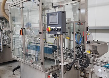 Line of cans, on which we stick a label, fill with the final product and screw a cap.