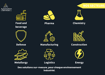 En intervenant dans un large éventail de secteurs industriels, Automation & Services enrichit en continu son savoir-faire technique et développe des solutions flexibles et sur mesure, adaptées aux enjeux spécifiques de chaque industrie.